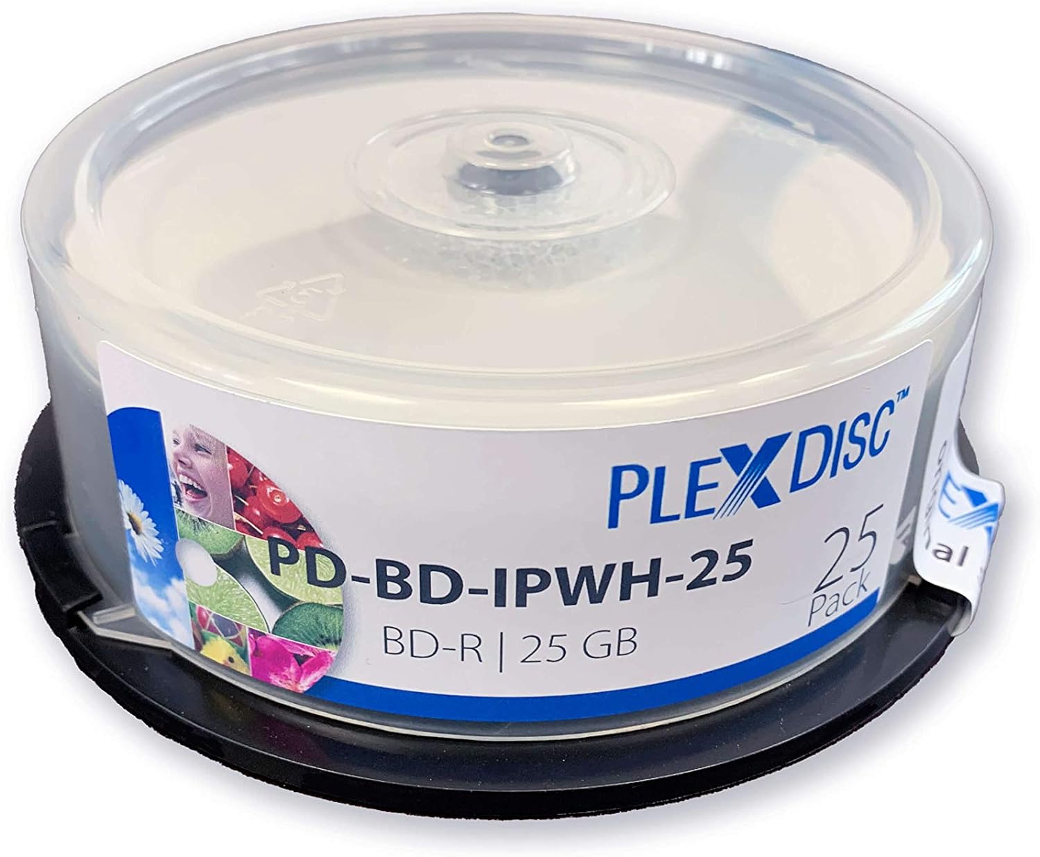 PlexDisc BD-R, 25GB, 6x, für Tintenstrahldrucker, 25 Disc cakebox